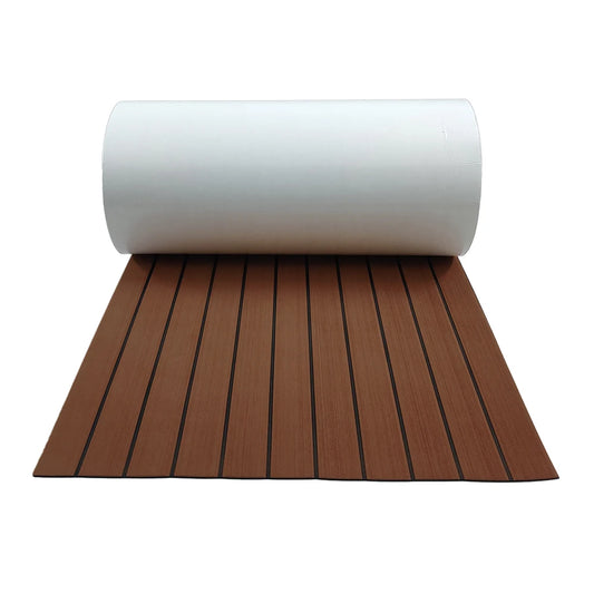 EVA Foam Faux Teak Boat Decking Mat - Non-Skid Yacht Flooring with Self-Adhesive Backing (600x2400x5mm)